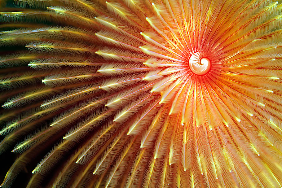 In nature, things are not always what they seem. Initially, this beautiful organism appears to be a striking flower, but it is really a characteristic and colorful tubeworm. These marine polychaetes, known colloquially as ‘spirographs’, live anchored permanently to the substrate, and are protected from predators by a calcareous tube, which is shelf made after a laborious process. Their gills have astonishing spiral form, used to trap food and, in turn, they serve as a respiratory organ. Many divers are attracted by the delicacy of its figure and when approaching, they cause its beautiful tuft of gills to disappear quickly into the tube.